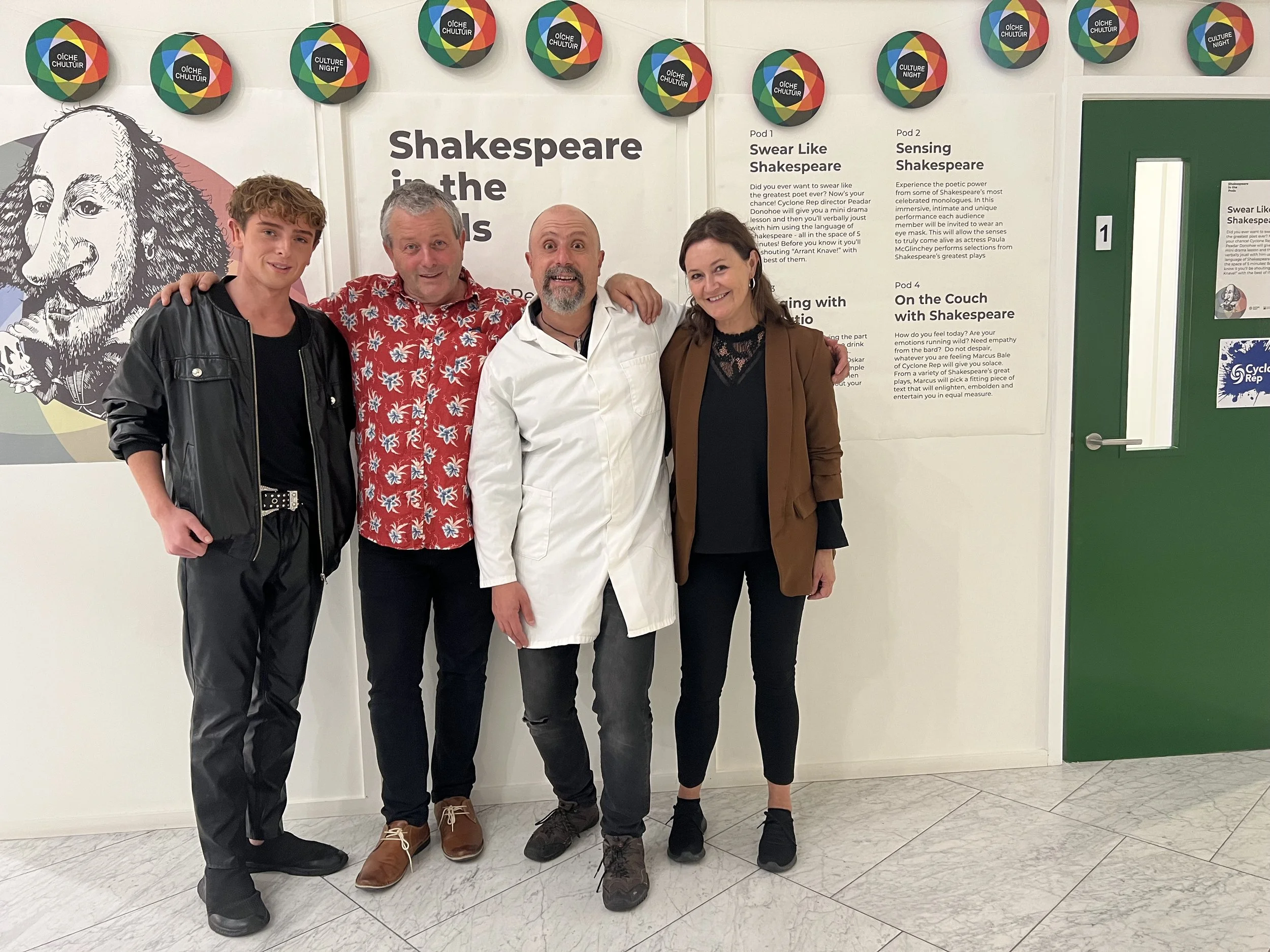 Once again, Cyclone was invited by Cork City Council to stage a Shakespeare themed performance for Culture Night. The pods referred to in the title were made for the Covid pandemic when meeting in offices was considered too risky. Hence, two person pods were created which had two entrances and a perspex window to seperate participants.